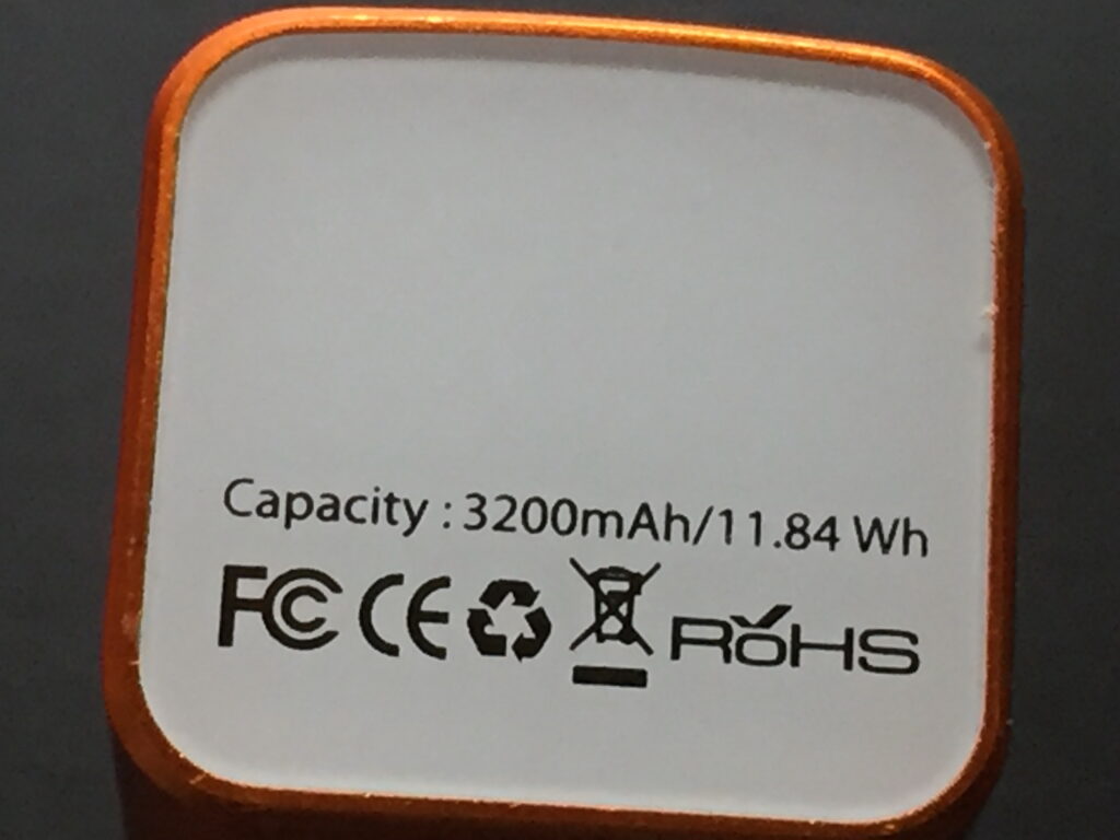 連続駆動実験に用いたのは、Jackery製バッテリーで3200mAhである。ただし、何度も使用しているので劣化している可能性はある。