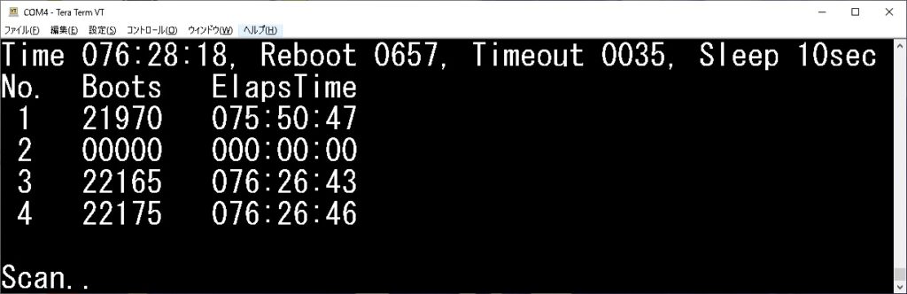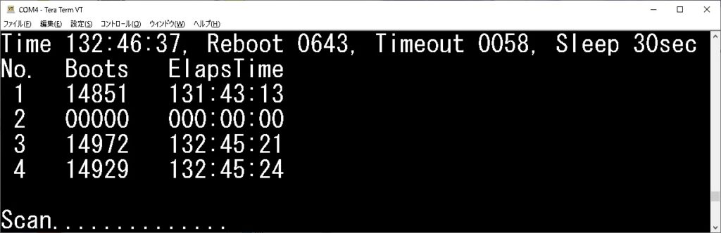 | スリープ(秒) | 通信方式 | ブート回数 | 駆動時間 (日時分) |